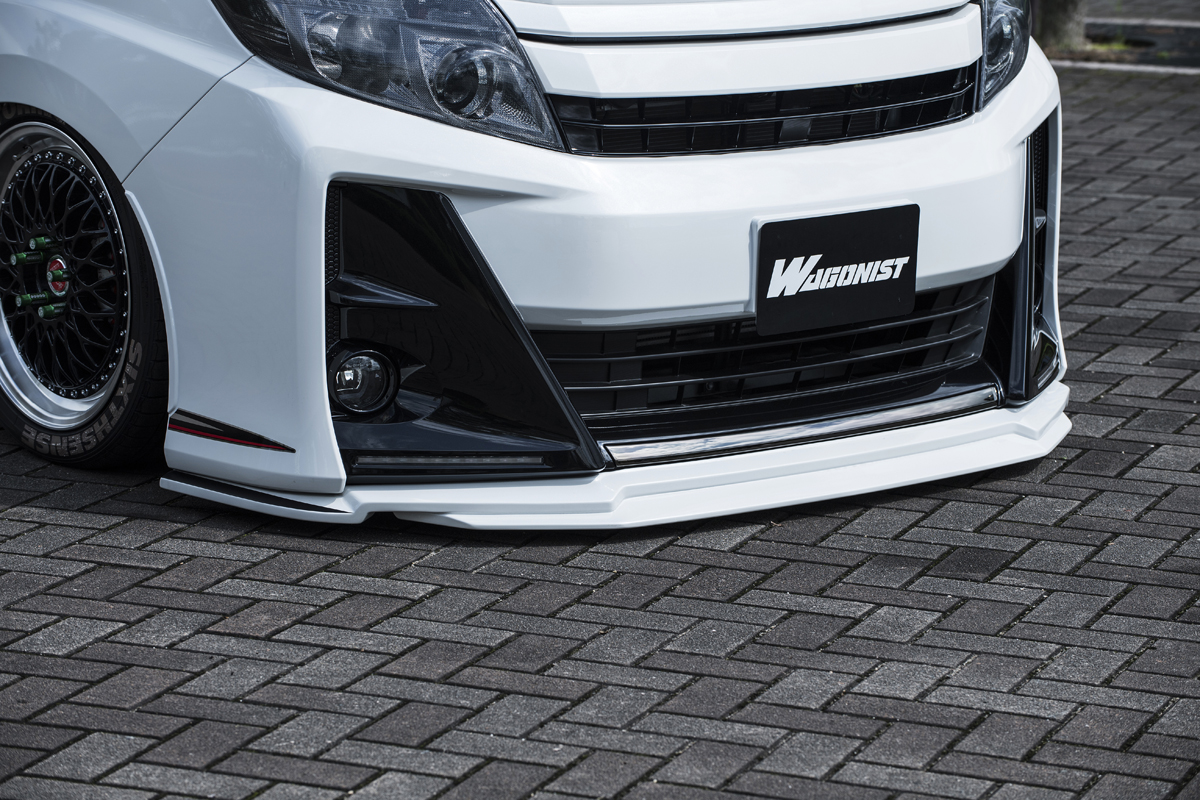 ノアに装着されたフロントリップはボディ色オンリーでコーディネイト。