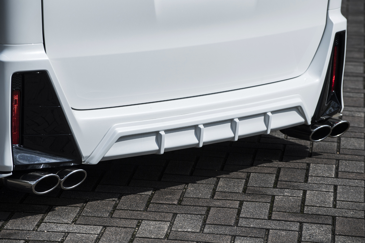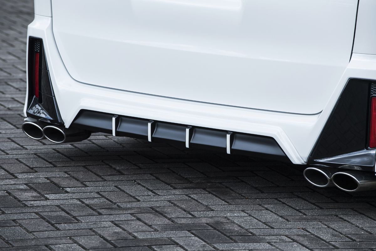 そしてもうひとつ、注目したいのがリヤディフューザー。リヤバンパーの上から貼付けるタイプで、取り付けるだけでリヤのルックスはガラリとチェンジ。