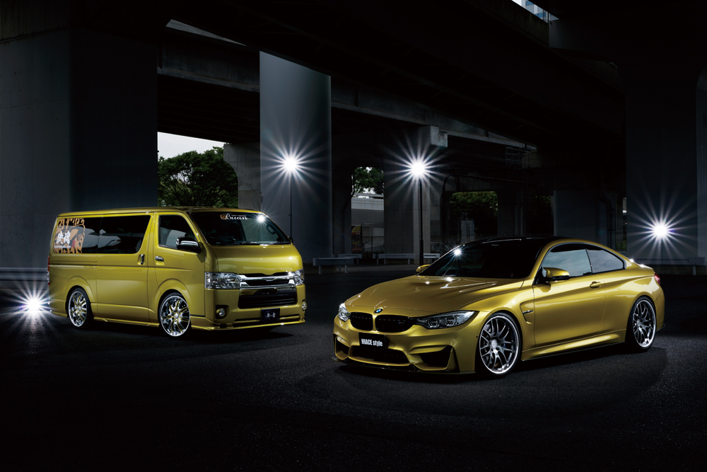 このボディカラーは、BMWのスポーツモデルであるM3とM4にしか設定されていない「オースチンイエロー」という塗色。このハイエースオーナーは大阪で開催された「大阪オートメッセ2015」の会場でオースチンイエローのBMW M4を見かけ、このボディカラーが非常に気に入ってオールペイントを思いつく。