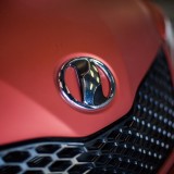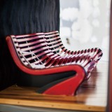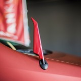 マットレッドのボディカラーとエアサス、ホイール、ブレーキでキメたフットワークがハイライト。オシャレなベンチに交換したセカンドシートに北米的センスを感じる