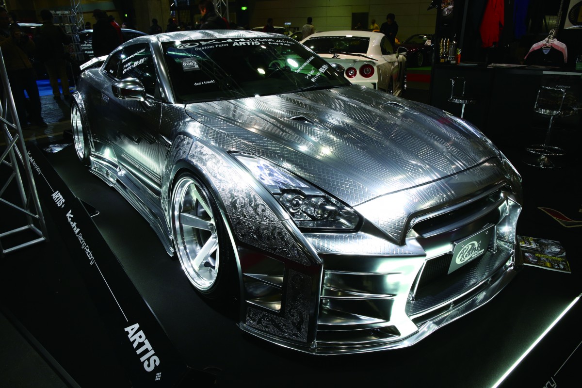 2015年大阪オートメッセでドレスアップカーコンテスト第1位に輝いた「KUHL JAPAN(クール ジャパン)」の”R35 GTR KUHL JAPANプロジェクト3D Ultimate”。アルティスの彫刻(エングレービング)によって塗装されたシルバーの日産GT-Rは、多くの来場者に衝撃を与えた。