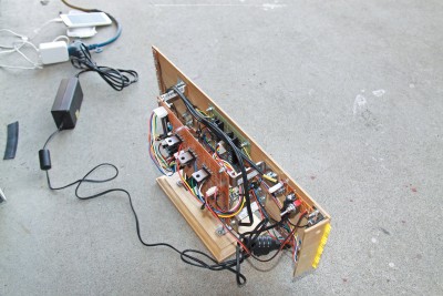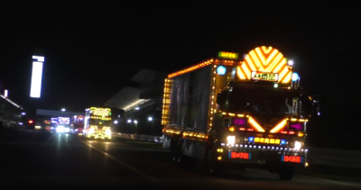ところが、実際は箱(荷台)のなかにガソリン発電機を積み、そこで作る100V電気で電飾を点灯させていたのだ。