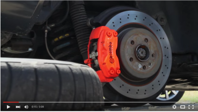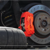 ブレーキはキャリパーがブレンボ製対向4ポットキャリパーに変更されている。ローターは、ドリルドタイプに換装されているが、それほど大径ではない。