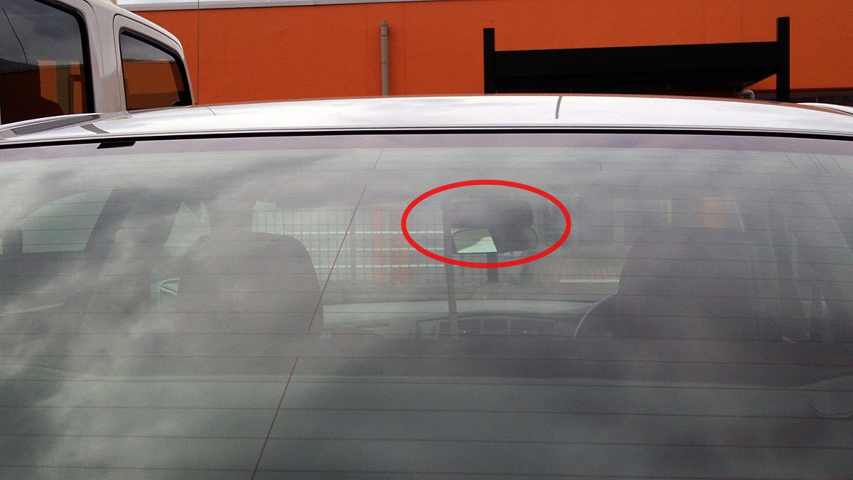リヤ3面のガラスに濃いスモークを貼っているケースもあり、写真のように見えないこともある(右の写真は通常のパトカー)。怪しいと感じたら、トンネルの出口など前方から車内に光が入るようなときに中が透けて見える。そうなるまで焦らず確認するチャンスを待つことをオススメする。