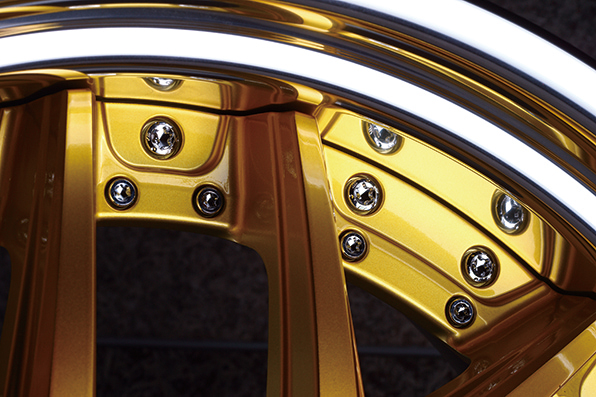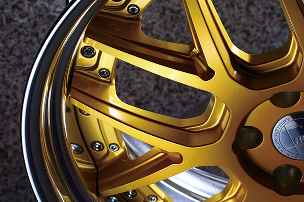 今回、2ピースホイール『ライエンM07』追加された色名は単なるゴールドではなく、リッチゴールド。写真を見れば分かる通り、ありきたりなベタ塗りのゴールドなんかじゃない。