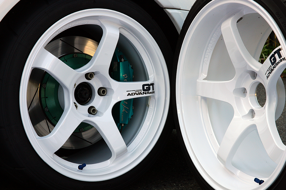 写真は、「横浜ゴム」の『アドバンレーシングGT』というホイール。19〜20インチは「リバースリム」、18インチは「ノーマルリム」を採用する。その違いはスポークとリムの接合部のリムの深さ。「リバースリム」のほうが奥にありディープ感のあるデザインを可能とする。