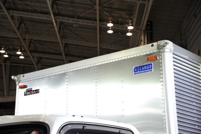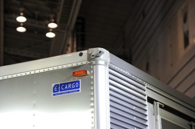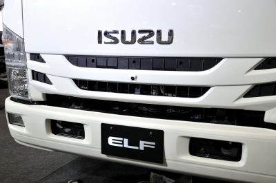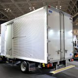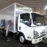 展示されていた2トン車のエルフは、いすゞ自動車の標準パネルトラックと呼べるE-CARGOの箱を載せたタイプだ。
