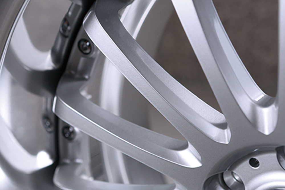 スポークはコンケーブ形状で、エンドからセンターに向かって、なだらかに落ちていく。スポーク側面には肉抜きを施し軽量化