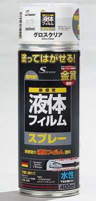 同じくフィルムスプレーの透明バージョン。こちらは何度塗り重ねても色は付かない。見た目を変えるよりも“保護力アップ”などに最適。