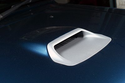 ボンネットダクトのフードを塗装した例。差し色としてワンポイントで使うと、クルマのオシャレ感もアップ。もちろん最後ははがして元通りにできる。