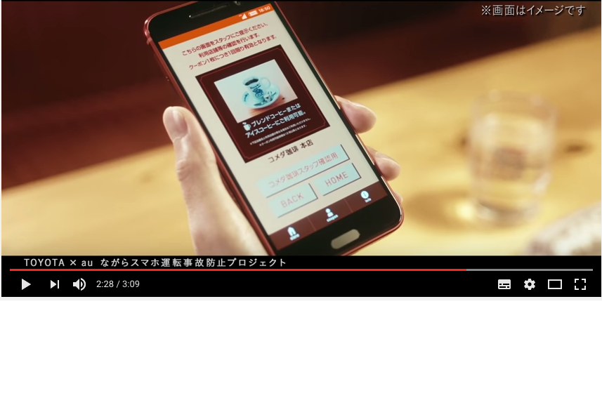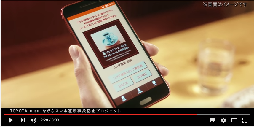 そこでトヨタが交通事故対策を考え、コメダ珈琲店とKDDIの協力を得て、「ながらスマホ」を防止するプロジェクトをスタートしたというわけだ。
