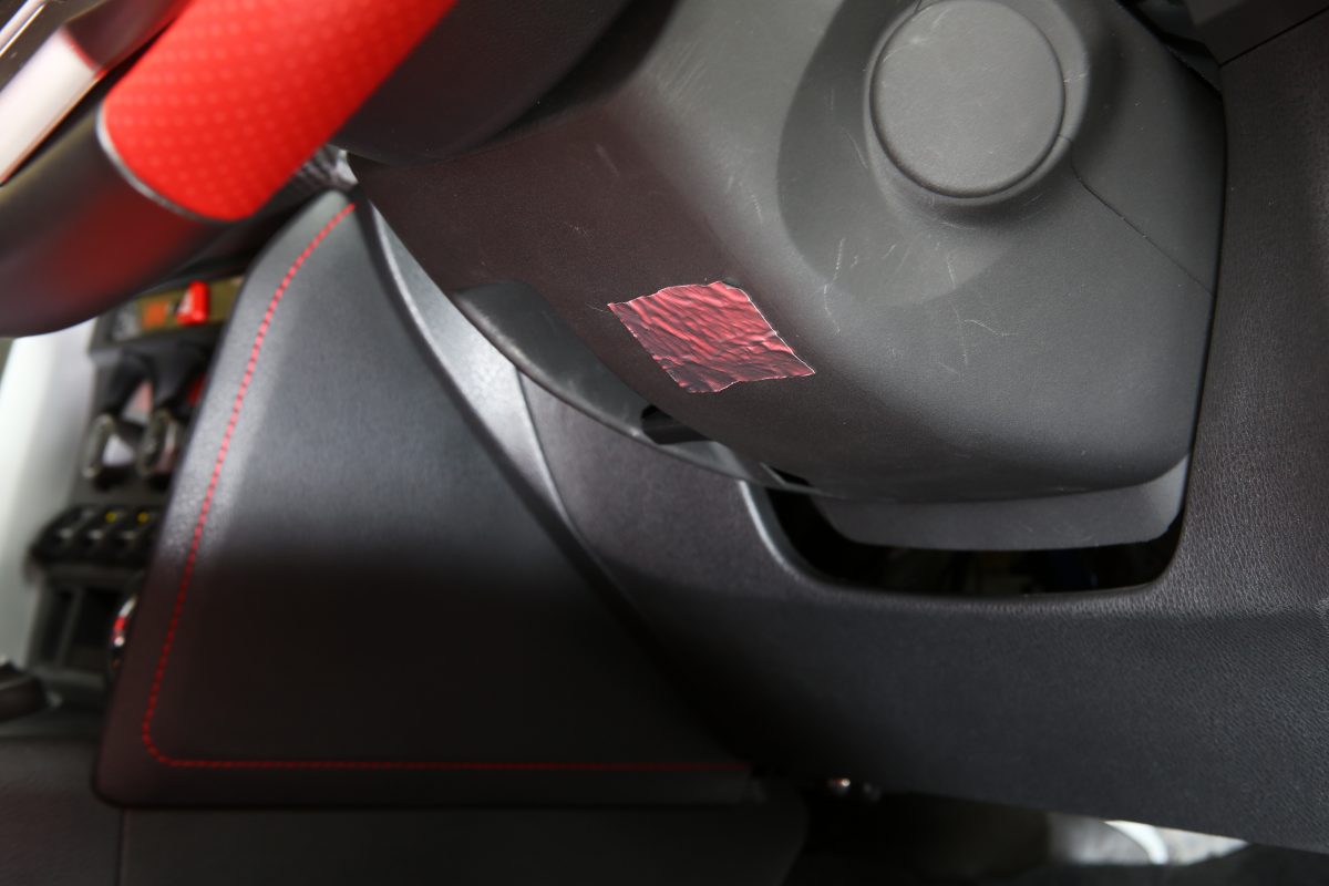 86の試乗会では、前期型を使ってアルミテープの有無を比較する機会を作ってもらったが、1回目はステアリングコラム下のみで走行。