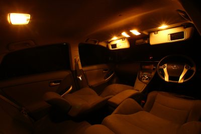車内のルームランプのLED化は、明るくなると同時にクールな色調の光が、まるで新車のようなイメージに変身させる。さらにバニティランプも加えれた全LED化をすれば完璧だ。