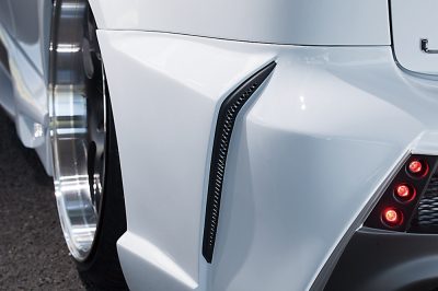 塗り分けの効果も相まって、ダクト&ディフューザー部分はまるでいくつもの別体パーツが組み合わさっているかのような印象に。加えて豊富なLEDが造形を引き立て、装着するだけでクルマが別の次元へと生まれ変わる。