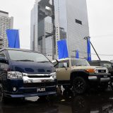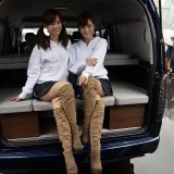 2台のトヨタ・ハイエースは、それぞれキャンピングカー仕様になっている。まだ、試作中ということで外観のみを紹介。