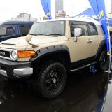 SUVらしい逞しさを感じさせるのがトヨタFJクルーザー。リベット打ちのオーバーフェンダーにオフロードタイヤ、リフトアップサスペンションを装着。新車ベースはもちろん、中古車ベースでも同様なクルマにドレスアップできるのだ。