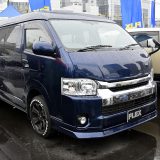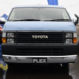 そして、このブースでもっとも注目なのが、このハイエースだ。上下角形4灯ヘッドライトを装着し、アメ車のミニバンをイメージさせるフロントマスクを実現。
