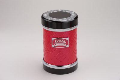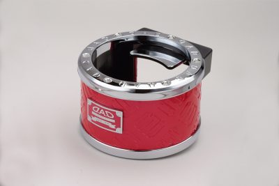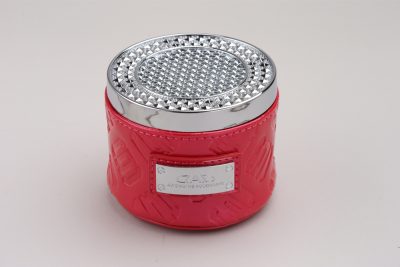 アッシュボトルとドリンクホルダーのエンブレムは、地の色にもピンクを採用。滴るようなツヤ感が美しいエナメルピンク。試行錯誤を繰り返して、この色を実現した。