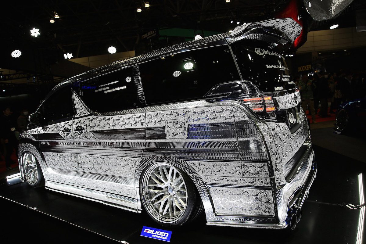 そのなかでも特に注目度の高かく、誰もが足を止め見入ったのは全身に究極のカスタムペイントとでも呼ぶべき、『エングレービング&メタルペイント』が施されたトヨタ・ヴェルファイアとスバルWRX-STIだ。
