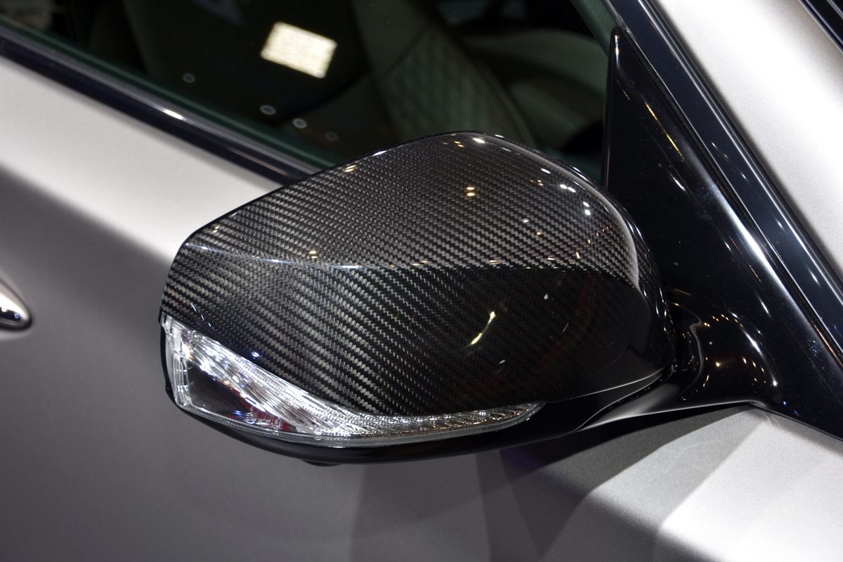 そして鍛え抜かれた走りを予感させるカーボンエアロパーツをフロントのリップやドラミラー、トランクエンドスポイラーなどに配置。