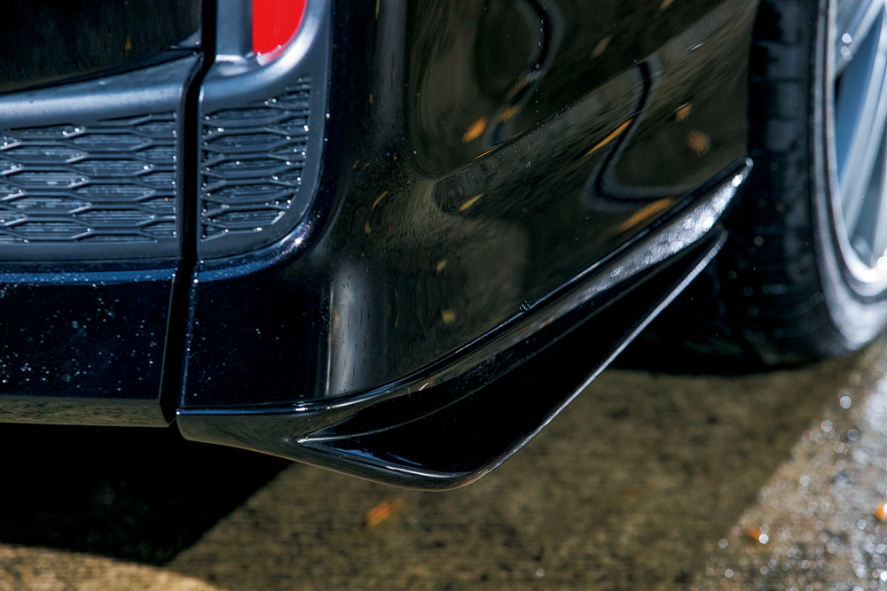リアまわりのバランスを取り直す左右分割式のリヤプロテクター。