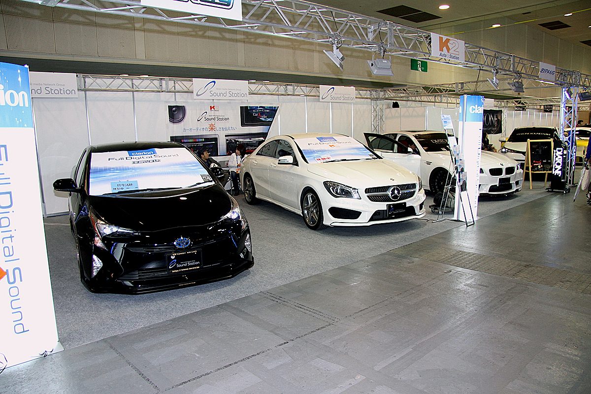 プロショップとして全国に名を馳せるサウンドステーションは東西の有力店が集結。堺市の「AVカンサイ」、阪南市の「オートステーションK2」、鳥取倉吉市の「ジパング」、そして愛知岡崎市の「ルロワ」、4店が作ったデモカーを展示および試聴を行っていた。