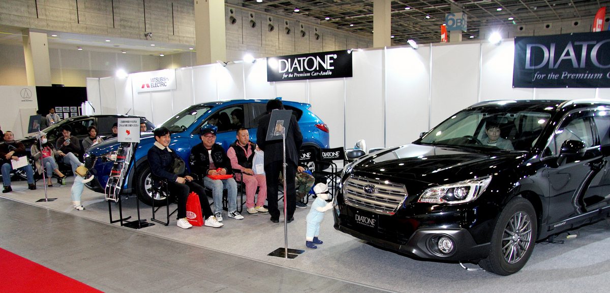 「三菱電機」ダイヤトーンは、3台のデモカーを展示。その中の1台、スバル・レガシィアウトバックは『サウンドナビNR-MZ200PREMI』を主軸としてスピーカーは『DS-SA1000』、サブウーファーは『SW-G50』という最上級のダイヤトーンサウンドが聴けるシステムとなっている。 熱心なオーディオマニアだけでなく、一般来場者も列を作るほど人気が集まる。