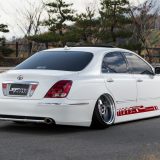 広島県の「STクラフト」は、ユーロな10セルシオを駆り、イベントでも活躍している安藤サンが立ち上げたプロショップ。創設時から「いつかは…」と思い描いていたオリジナルエアロを、丸3年経った2016年の暮れに発売開始したのがトヨタ18系マジェスタ用だ。