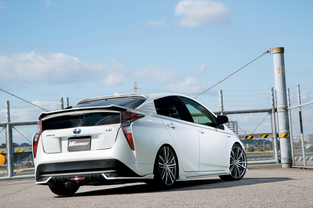 トヨタ50系プリウスで手軽に個性を主張できるのが、『シルクブレイズ』の「リアハーフスポイラー」などのボディパーツ。手間を掛けずに装着できる純正色塗装済みはもちろん、純正色+塗り分けもラインアップする。