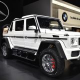 99台の限定で生産される「マイバッハ」ブランドのGクラス。『ランドレー』と呼ばれるソフトトップを備えたオープンスタイルがなんとも奇抜。4×4スクエアードからホイールベースを60mm延長。Sクラスから流用した後席は本来ラゲッジである場所までずらされ、リムジンのようなスタイルに。