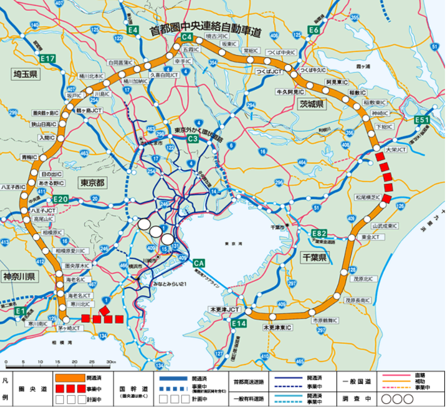 2016年4月から圏央道(茅ヶ崎JCT~海老名JCT、海老名~木更津JCT)と新湘南バイパス(藤沢~茅ヶ崎JCT)では、ETC2.0車載器装着車の通行料金が2割引となるサービスが開始されている。
