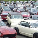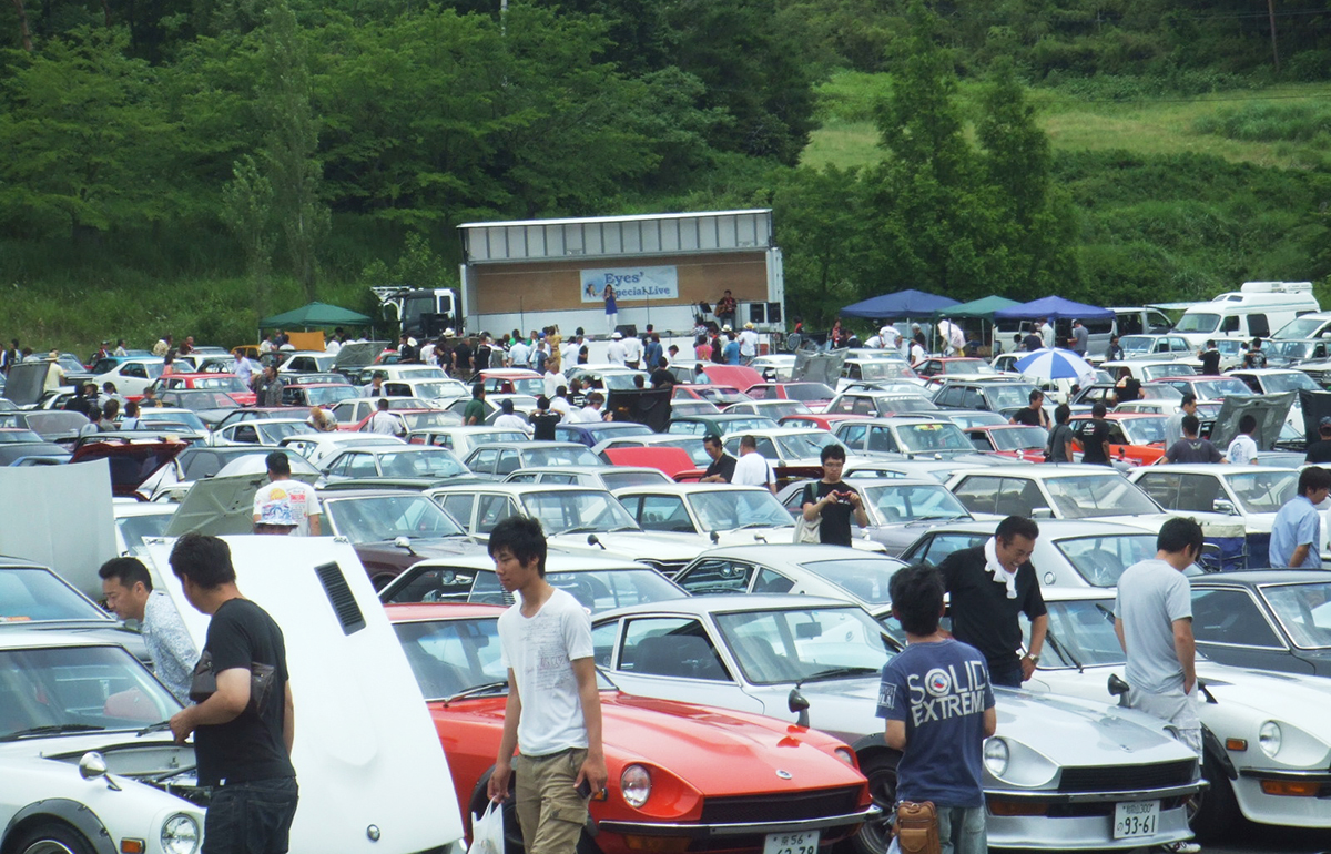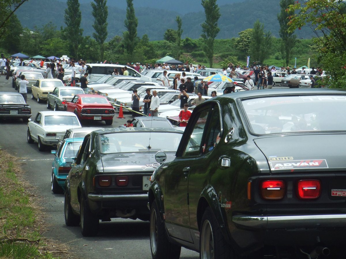 旧車の愛好家たちが、 北は岩手から南は熊本まで全国各地から、 自慢の愛車に乗って大集結。ハコスカ、 ケンメリ、 ブルーバード、コスモ、ベレットなど、昭和を彩ってきた往年の名車たちが展示される。その数、なんと約700台。