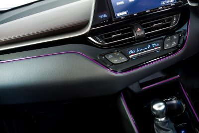 下の写真は、インパネ下とステアリング、センターコンソールに差し込んだのだが、この絶妙なさじ加減がいい感じ。お手軽に内装の雰囲気がグンとブラッシュアップできちゃうのです。