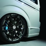 しかし、見た目を変えるというのはあくまでも副産物であり、大幅なブレーキ性能アップが本来の目的だ。『ディスクブレーキシステム』の内容は、18インチホイール対応がフロント6ポット&リア4ポット、20インチホイール対応がフロント6ポット&リア6ポットとなり、ハイエースの弱点を丸ごと1台分改善してくれる。
