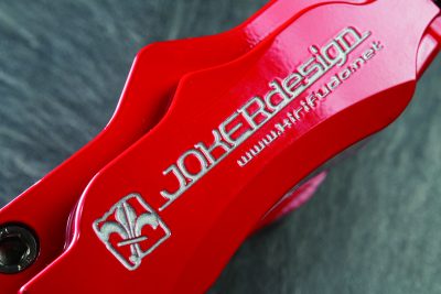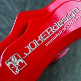 ブレーキで最も引き立つキャリパーカラーは、オーダーによってファッショナブルに彩ることができる。『JOKERdesign』のロゴも絶好のアクセントに。さらに、ベルハウジング部もカラーオーダー可能だ。