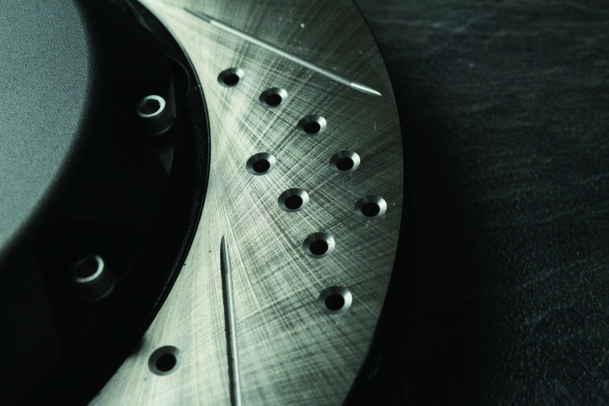 ベルハウジング構造のブレーキディスクは、放熱性に優れたドリルド&ウェーブローターを採用。