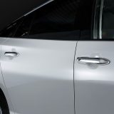 外装では、クロームメッキでサイドシルエットをイメージアップさせるサイドガーニッシュ、ヴェルファイア用のヘッドライトトリム、Zグレード専用のフロントリップカバー。他にフロントナンバープレートガーニッシュ、フロントグリルカバーなども同じくステンレス製のメッキパーツとして人気も高い。特に、LED付きとなるファントムグリルカバーは、ナイトシーンを彩るパーツだ。