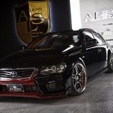 ボディ形状やラインを見極め、セダンらしくエレガントに造形されているからなのだが、新作のトヨタ・120系マークX用はそれだけに留まらない。このエアロパーツには、純正然としたシンプルさにアグレッシブな薫りを投入してきた。