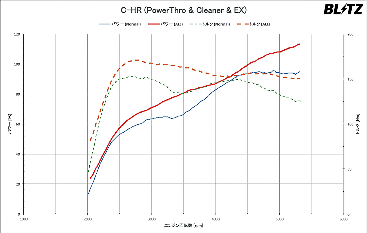 最大トルク(Nm):170.8→純正比18.2Nm アップ