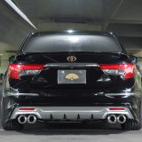 「ツインフォグや開口部フィン、リアディフューザーなどなど、『センセーション』の迫力のある造形が良く似合う車種だと思います。10ミリワイドのフェンダーと存在感のあるリアウイングは、マークXらしいスポーティ感をアップさせつつ、ドレスアップカーならではのインパクトも高めますよ」。