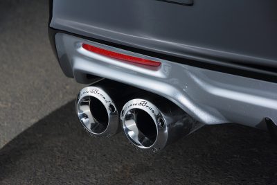 リアバンパーのボトムは前期型用より若干伸ばし、腹下が見えないように配慮した設計。