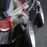 クルマを製作したのは、作りの美しさに定評がある静岡の「ゴマガレージ」。同ショップが得意とする滑らかなブリスターフェンダーでグラマラスなフォルムを形成し、どの黒よりも黒いオリジナルのゴマブラックでオールペン。