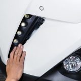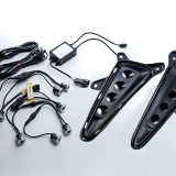 そこで「このチープな存在をなんとかできないだろうか」と考えたのがシックスセンス。「セブン」ブランドから発売された『LEDデイランプキット』は、純正コーナーカバーとの交換式で最先端感を放つ片側4発のスポットLEDを装備したもの。ベースフレームは未塗装と純正イメージのマットブラック塗装済みを設定する。