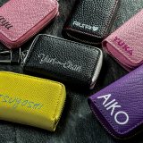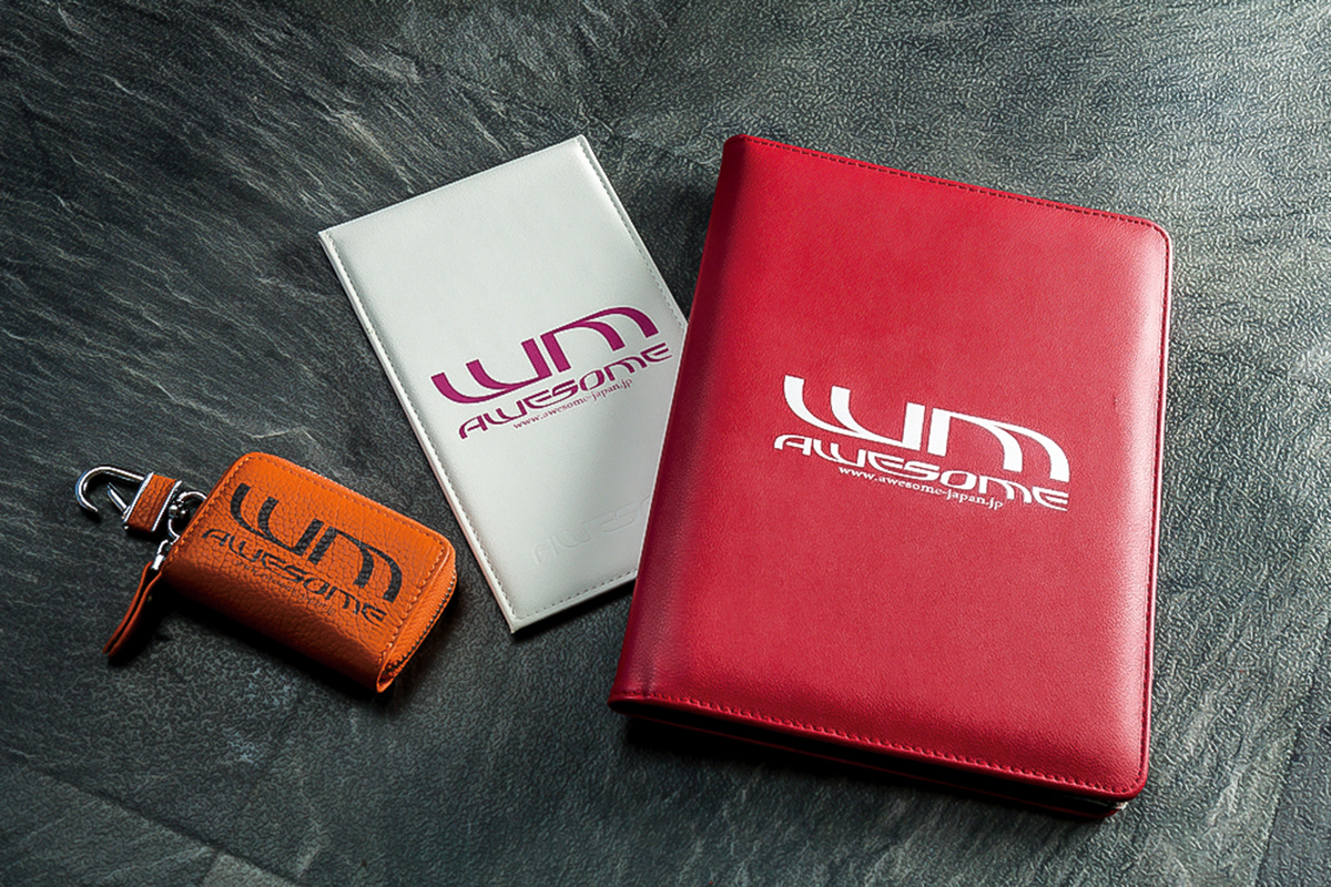 各種レザー製アイテムを展開する「オーサム」では、同社が展開するスマートキーケースやゴルフのスコアケースなどに文字プリントできる新メニューを開始した。