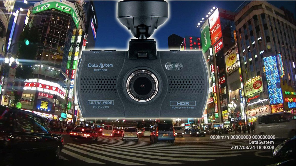 電子系パーツを得意とする「データシステム」として初のRスペック『DVR3000』は、約350万画素・1/3型CMOSセンサーを搭載。高精細な3メガ(縦1296画素×横2304画素)録画に対応。ナンバープレートなども鮮明に映し出せるようになっている。