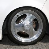 当時トラック系カスタムカーなどに人気だったホイールだ。サスペンションには車高調をセットし、車高をほどよくローダウンしている。