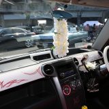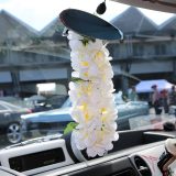 ルームミラーには、フラワーレイをかけてハワイアンなテイストも演出する。