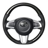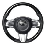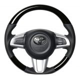 カーボンやウッドは、プリントではなく本物の素材を使用し、レザーも高級牛革を採用するなど、高いクオリティも魅力だ。また、手を置く位置をわずかにくぼませたガングリップ形状を採用。見た目の美しさだけでなく、疲れにくさと操作性も考慮した高品質なステアリングになっている。