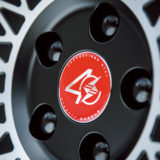 センターキャップも40周年のアニバーサリー仕様。デモカーではボディ色とのコーディネイトを意識して赤キャップ(オプション)を選択。