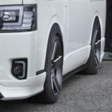 フラットな面で構成されるハイエースは積載メインのバンとしては王道の姿だが、現在注目されているのはそのサイドに程よくボリュームを追加したオーバーフェンダースタイル。